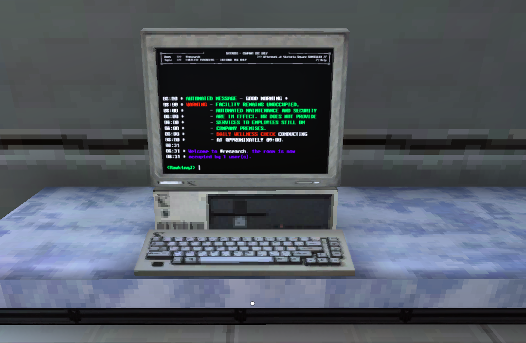 We use low-poly models and low-resolution textures to evoke the sense of 90s/00s games we are inspired by, such as Half Life or Portal.